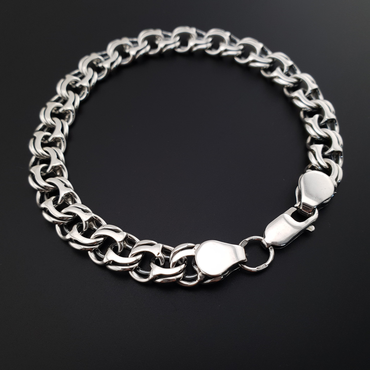 Магазин пропонує велику колекцію чоловічих ювелірних виробів зі срібла. На особливу увагу заслуговує срібний браслет чоловічий широкий подвійний струмок, ширина 8 мм, чорнене срібло 925, довжина 19 см. Виготовлення товарів здійснюється сертифікованими українськими компаніями, з дотриманням стандартів якості та застосуванням найкращих матеріалів.