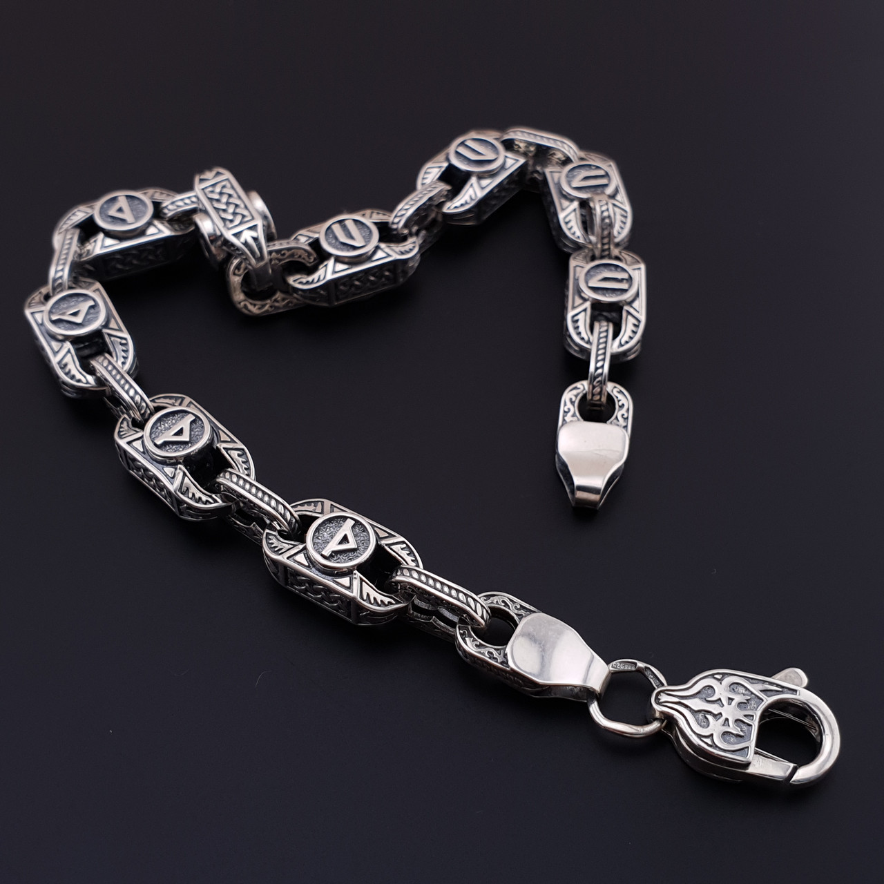 Срібний чоловічий браслет Руни 8 мм. Браслет на руку срібний чоловічий. 24 см